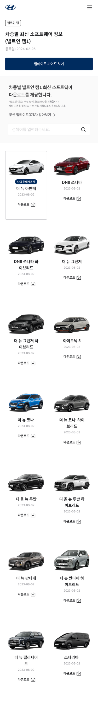 빌트인 캠·디스플레이오디오·내비게이션 업데이트 프로그램을 찾고 내 차량과의 호환 여부를 자연스러운 흐름 속에서 확인할 수 있습니다. 다운로드 전 필수 검증 과정을 더 명확하고 직관적으로 정리해 사용자가 흔들림 없이 올바른 소프트웨어를 받을 수 있도록 UX를 재설계했습니다.