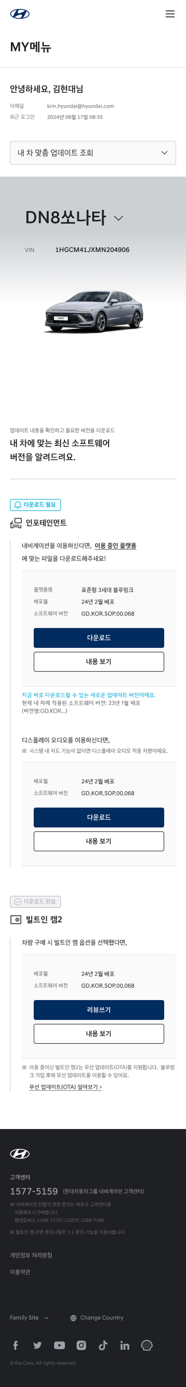 통합된 Pleos 계정으로 로그인하면 등록된 차량의 소프트웨어 정보를 더 정확하게 확인할 수 있으며, 업데이트 가능 여부도 더욱 직관적으로 파악할 수 있습니다. 사용자별 차량 데이터를 기반으로 불필요한 검색 단계를 줄이고 가장 적합한 업데이트 경험을 제공하도록 설계했습니다.